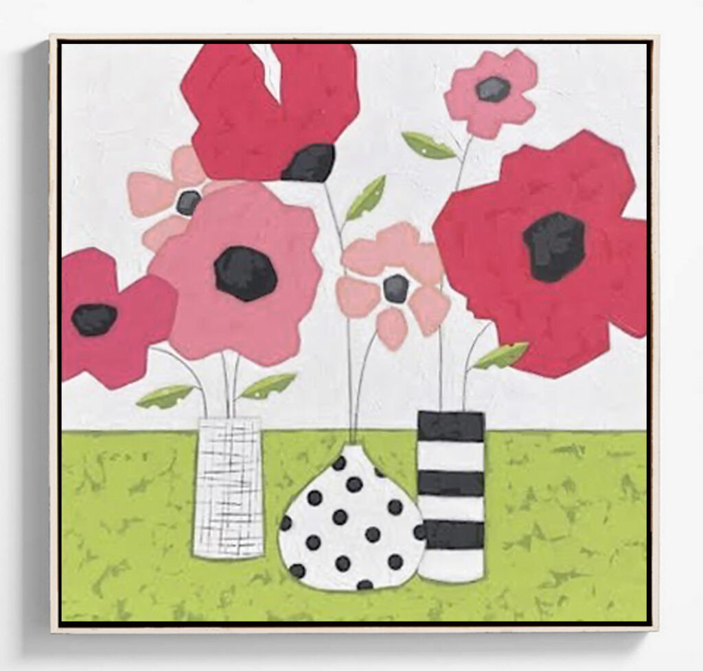 flowers + vessels | original acrylic + oil pastel in float frame | 24″ x 24″ | $580